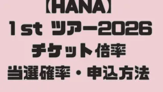 ライブHANAライブチケットが取れない⁉倍率・当選確率、狙い目は?一般発売はある?セトリも!【花ツアー】 きりやまHoneysお待たせ~♡紅白出場も決めたHANAのホールツアーライブ開催が決定!さいとうチケットの入手方法や当選確率、一般販売などの情報を教えちゃうよ♪こちらの記事で分かること【HANA】2026ライブツアー:公演スケジュール日程・... 2025.12.20ライブ