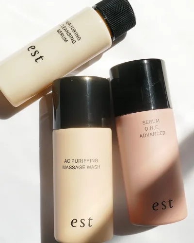 estの代表的商品、炭酸泡のアイコン的美容液「エスト セラム ワン アドバンスド」が入っていて嬉しい!