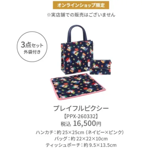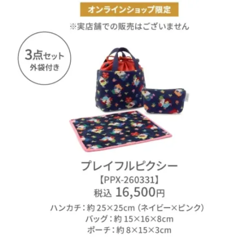 | スウィングチェリー | ¥16,500(税込) | ハンカチ25×25 ショルダーバッグ ティッシュポーチ (3点セット・外袋付) |