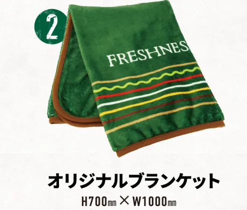 | 内容 | ①オリジナルトートバッグ ②オリジナルブランケット ③フードチケット3,500円分 (700円×5枚) |