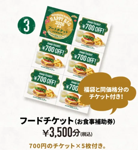 フレッシュネスバーガー福袋は毎年フード引換券だけで十分元が取れてお得!と評判の人気の福袋です。