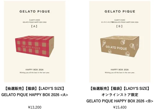 【gelato pique】福袋は店舗販売や、【gelato piqueオフィシャルオンラインサイト】での販売は行われません。