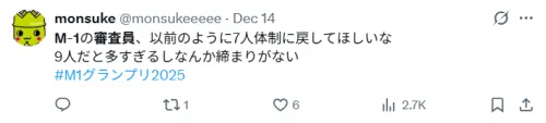 M-1審査員のコメントは毎年SNSで大きな話題になります。