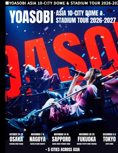 ”YOASOBI ASIA 10-CITY DOME & STADIUM TOUR 2026-2027”公演のスケジュールと会場情報はこちらです!